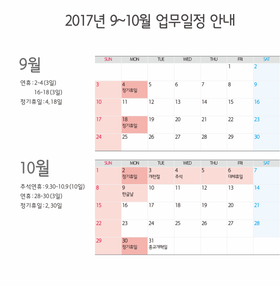 상기와 같이 9~10월 업무일정을 공지합니다.