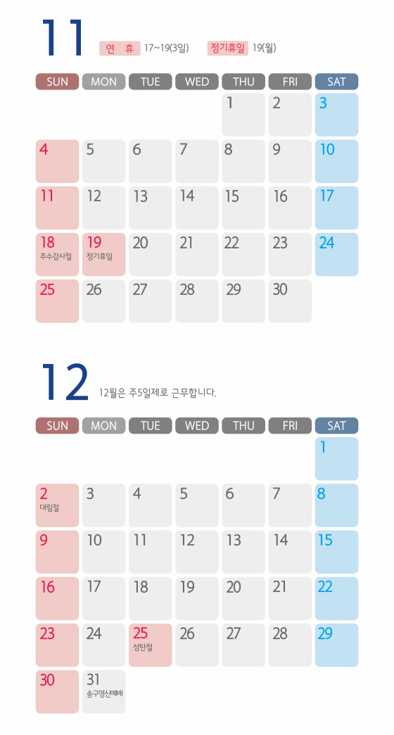 2018년 11~12월 업무일정안내