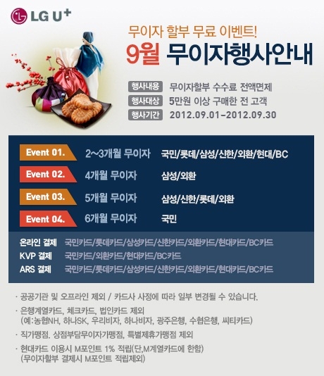 9월 무이자 할부 행사안내