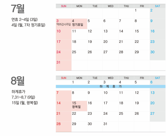 2016년 7~8월 업무일정 및 휴무일
