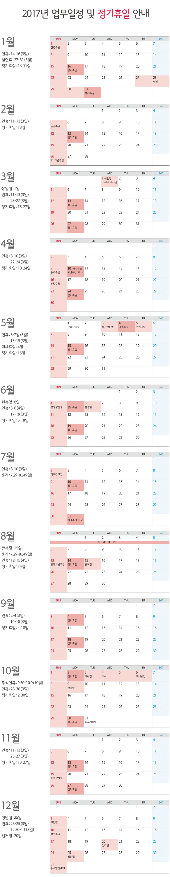 2017년 업무일정 및 정기휴일